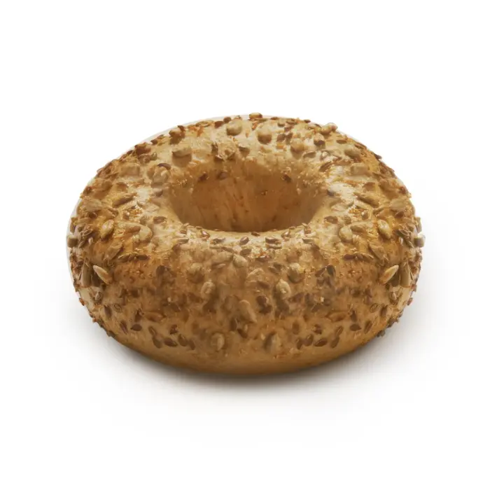 Nutritivo y delicioso Pan Bagel hecho con una mezcla de harinas multicereales y una variedad de semillas enteras.